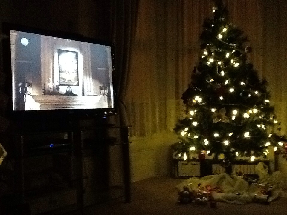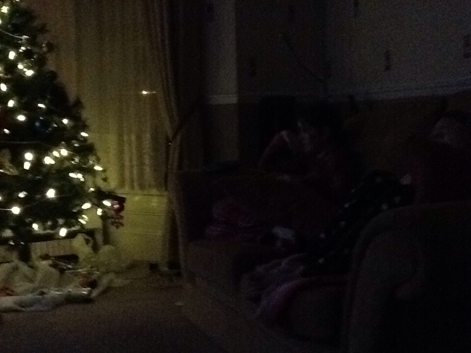 Tom is in bed. Emma is waiting to go. The girls are watching a film by the light of the Christmas tree. Santa’s milk and mince pie is on the hearth. Reindeer food is outside with sparkling bits. I think we’re waiting for Christmas!!