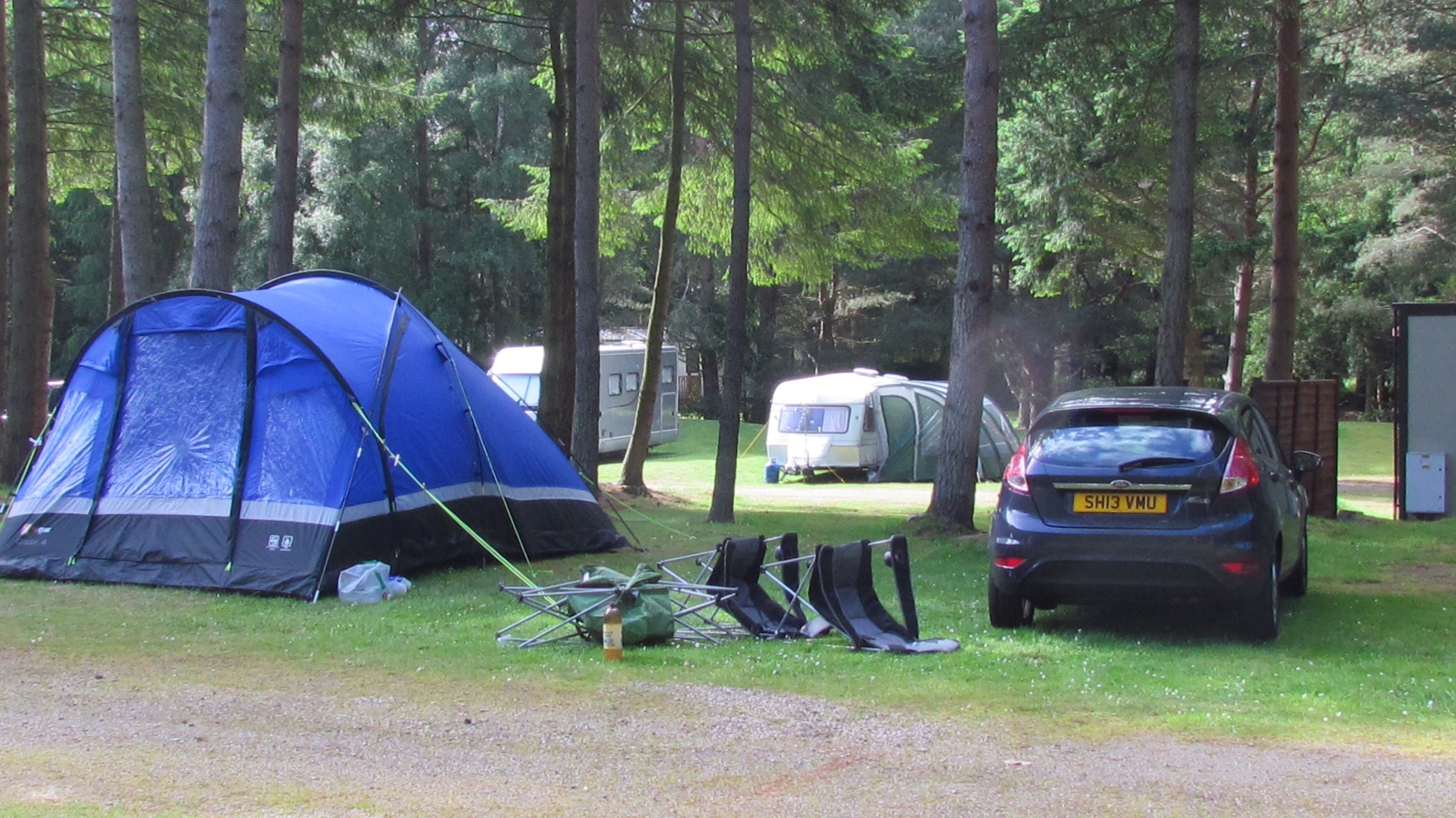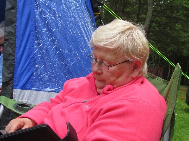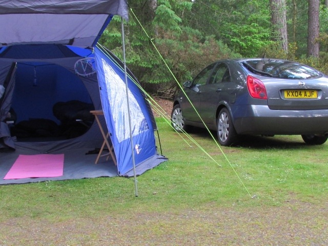 Following our ‘trial’ at Aberfoyle, we were slightlybetter and perhaps a minute or two quicker at pitching our tents. The prescribed time of 20minutes( suggested by tent manufacturers) came and went before we eventually found our homes for the fortnight established well enough to contain us and all our clutter. Our excuse this time was that the ground was too hard to peg, resulting in more than a dozen ‘bending of pegs’ with an accompanying hail of silent and not so silent oaths into the blue above! One day we WILL pitch perfect and beat our current time of an hour, or maybe it was nearer an hour and a half??